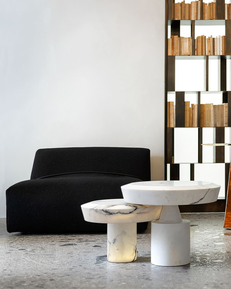 • Sittdyna med högfjädrande polyuretanskum PF45FR och memory foam, täckt med 100% quiltat gåsdun (Assopiuma-certifierad Gold Label), med mycket stabil struktur (SR75).