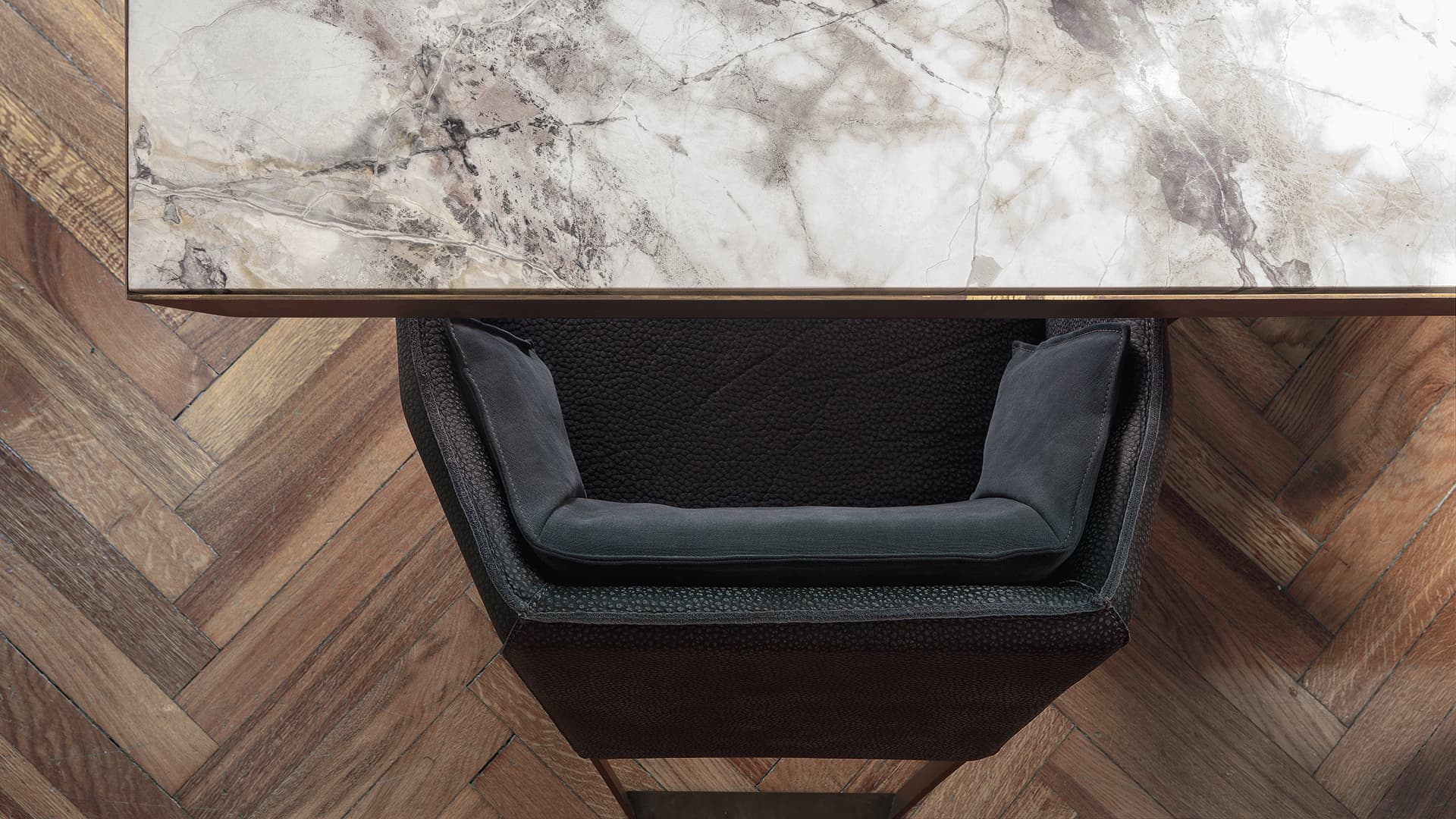 Ketch gör sin egen tolkning av två ben i form av ett förfinat skulpturalt mässingsstöd. Resultatet blir glamour i dess mest oemotståndliga form.